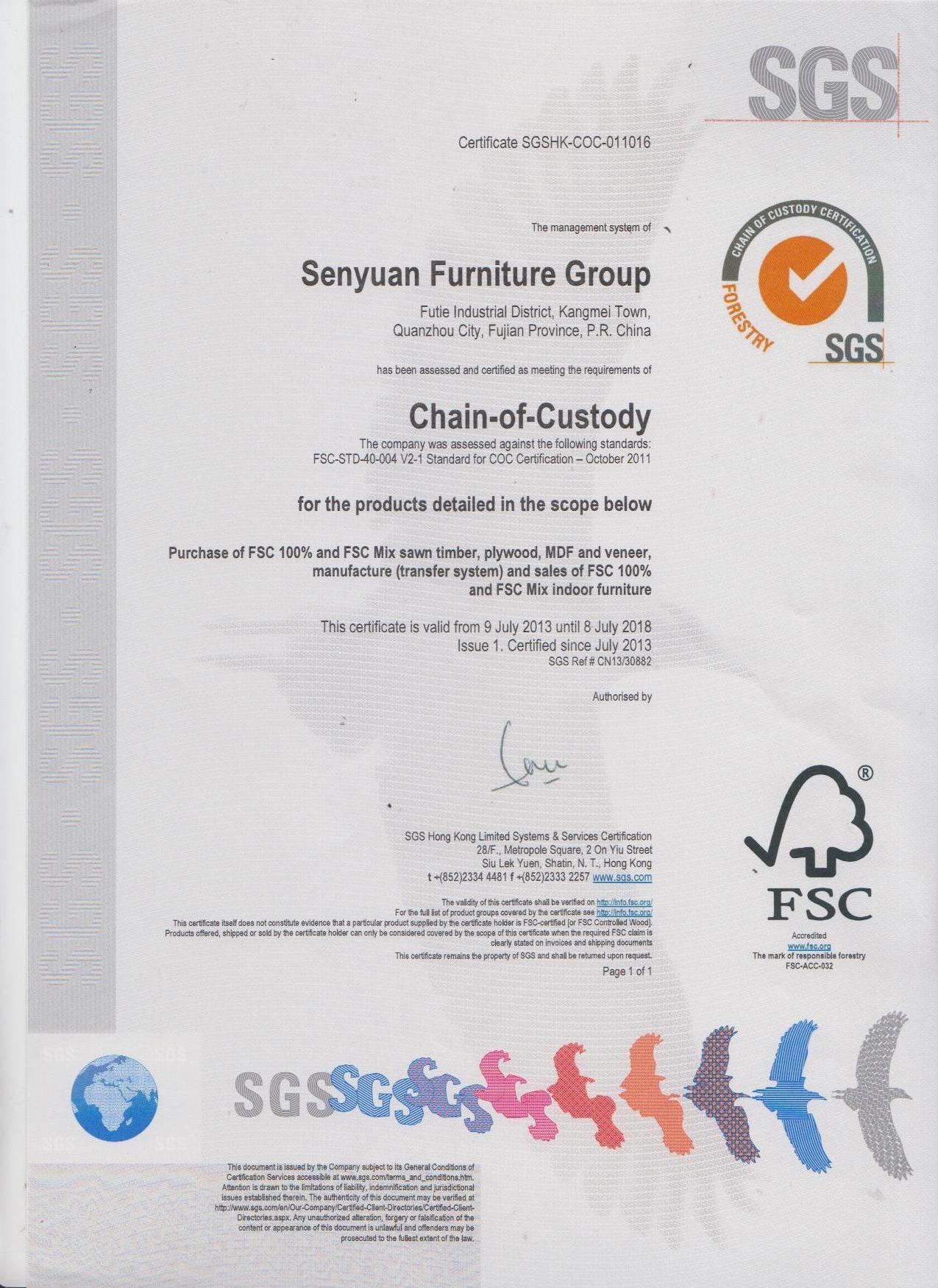通過FSC COC認證,對提高森源形象增強森源竟爭力,加強企業管理,向客戶和社會展示良好保護環境社會道德品質,保證市場的開拓,對順利進入有要求產自優秀管理的 森林的木制品市場有著極大的幫助。FSC COC認證主要包含三方面:一、采購適用的FSC材料。FSC COC第一要求就是原材料來自優質管理森林林場,具有保護環境促進森林可持續經營的供應商。二、按產品實現加工流程生產。生產和常規方式一樣,只是要做好 區分FSC和非FSC產品,在原材料堆放,半成品流轉以及成品入庫和出庫要做好記錄和區分。三、在產品上宣傳和使用FSC商標。這個是FSC COC認證的核心內容。正確使用商標,不僅是將我們的產品和消費者聯系起來的紐帶。FSC標簽與商標的正確使用對于我們保持良好保護環境社會形象意義重大。當消費者在我們的產品上發現FSC標簽或在宣傳材料上看到FSC商標時,則可以相信我們的產品的來源已經過了獨立評估,能夠保證森林的長期經濟社會環境效益。